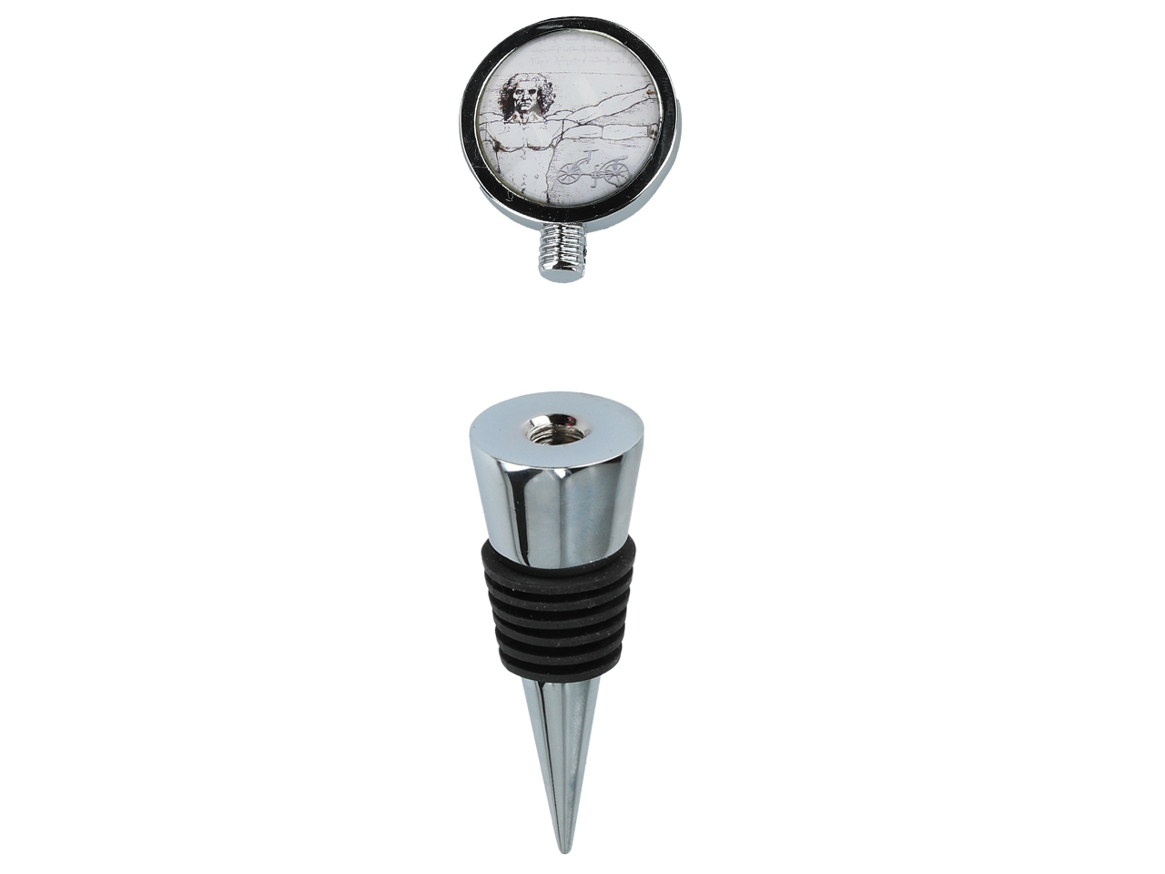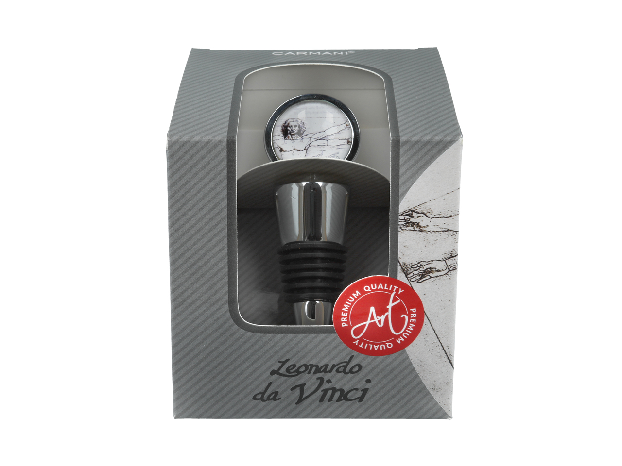 Daj się ponieść niezwykłemu pięknu kolekcji Leonarda da Vinci, sławnego włoskiego artysty i wynalazcy, i przenieś to niesamowite doświadczenie do swojego domu. Prezentowany korek do wina, inspirowany słynnym obrazem Leonarda da Vinci “Człowiek Witruwiański”, to elegancki i niezwykle unikalny element, który ożywi Twoje przestrzenie.