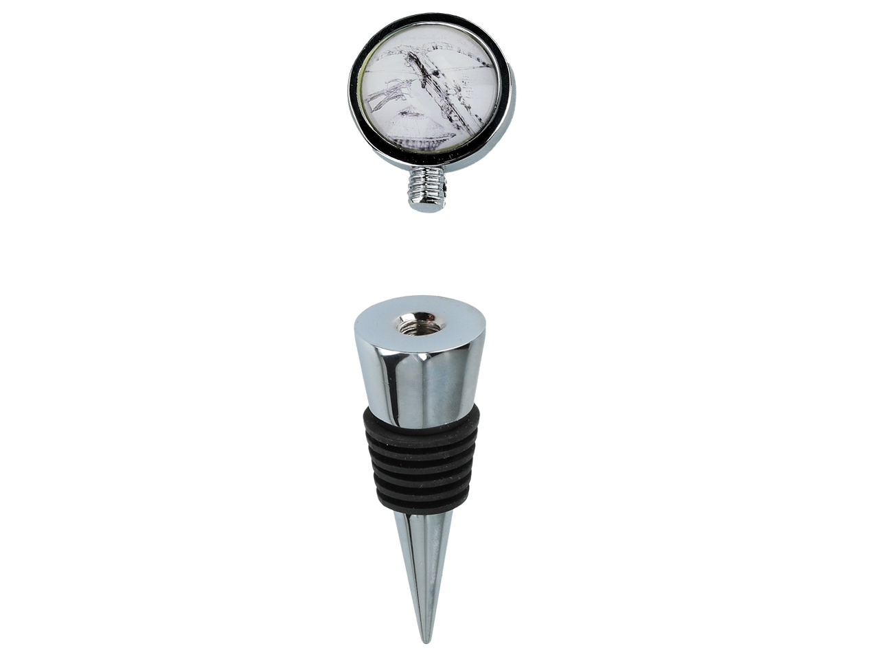 Ten piękny korek do wina wykonany jest z dbałością o najmniejsze detale. Ma wysokość 10 cm, co czyni go doskonałym dodatkiem do każdej butelki wina. Został zapakowany w kolorowy kartonik, dzięki czemu nadaje się również na prezent dla miłośnika sztuki i wina.
