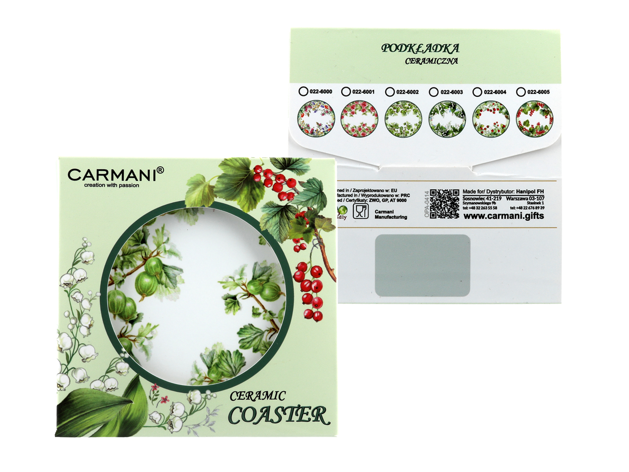 Podkładka ceramiczna, okrągła – Agrest jest dostępna jako pojedynczy egzemplarz w opakowaniu. Możesz ją także łączyć z innymi produktami z serii Victoriańskie Kubki Babuni, aby stworzyć spójny i stylowy zestaw akcesoriów stołowych.